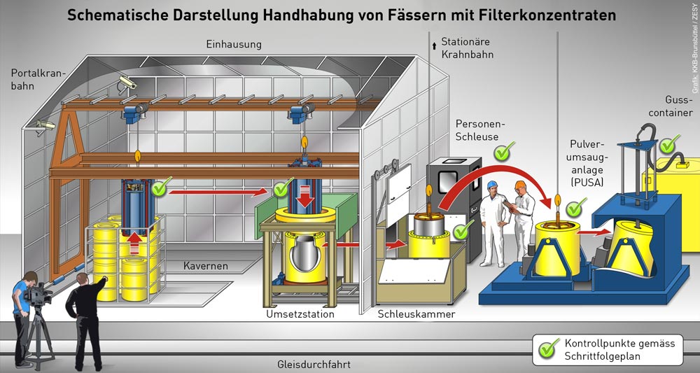 Bei einem Besuch von Robert Habeck, Energiewendeminister des Bundeslandes Schleswig-Holstein, in Brunsbüttel führte die Vattenfall die eigens entwickelten Greifwerkzeuge vor, mit der ferngesteuert die Fässer mit schwach- und mittelaktiven Abfällen aus dem Kernkraftwerk Brunsbüttel entfernt werden. Die insgesamt 632 Fässer enthalten Abfälle aus der Abwasseraufbereitung und aus den Prozesskreisläufen des Kernkraftwerks.